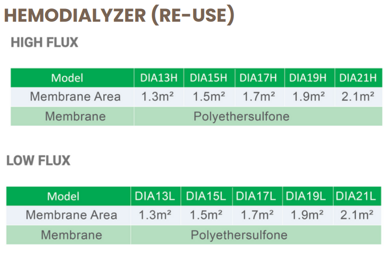 Hollow Fiber Dialyzers HF Series